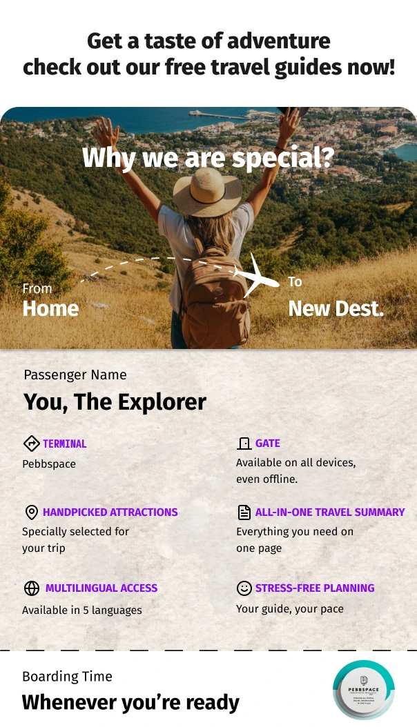 With Pebbspace, you’re not just planning a trip, you’re opening the door to an experience that’s been carefully designed to fit you.