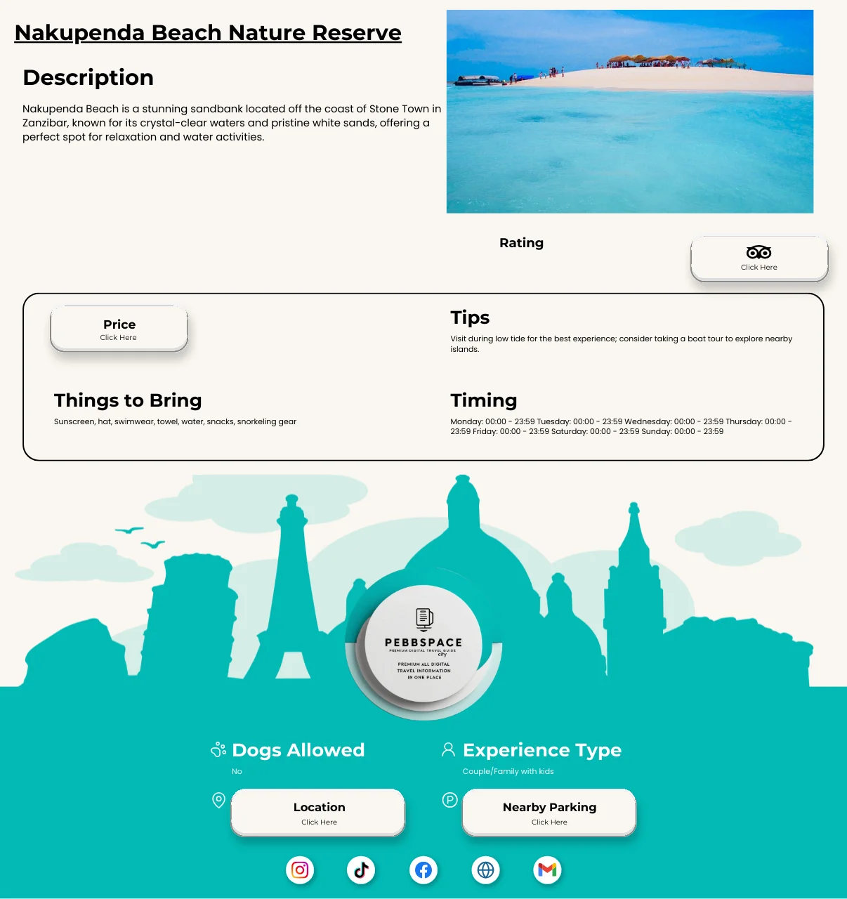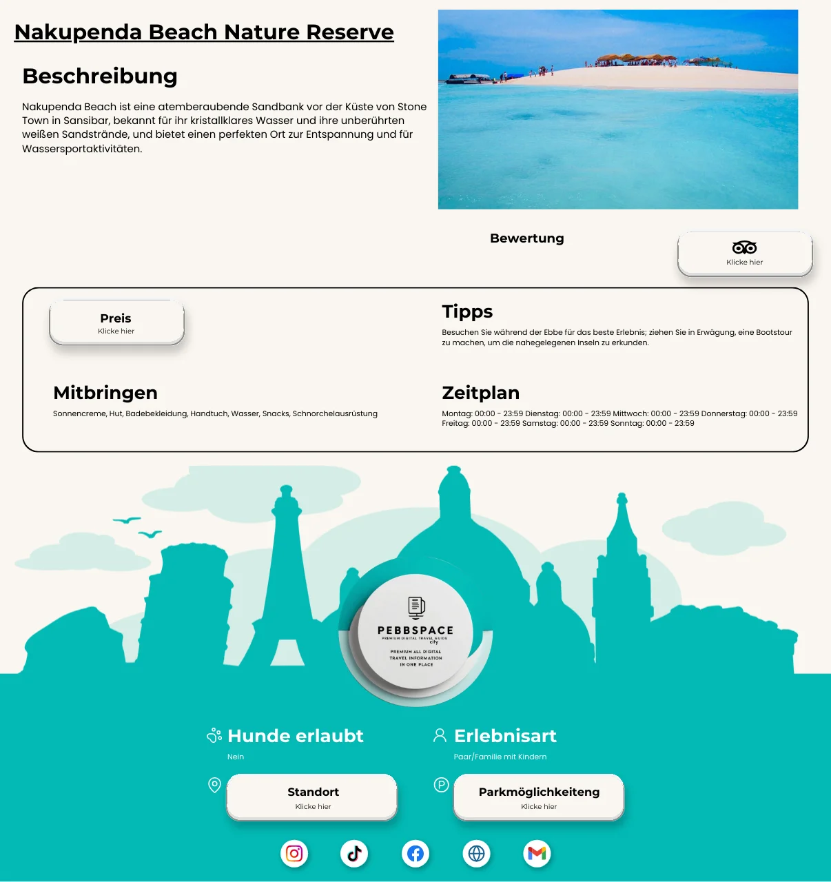 Entdecke die Magie Sansibars mit unserem Pebbspace City Guide! Mit liebevoll ausgewählten Orten, praktischen Tipps und echten Highlights zeigt dir dieser Guide die Vielfalt und Schönheit dieser Tropeninsel. Jetzt herunterladen und dein Inselabenteuer starten!