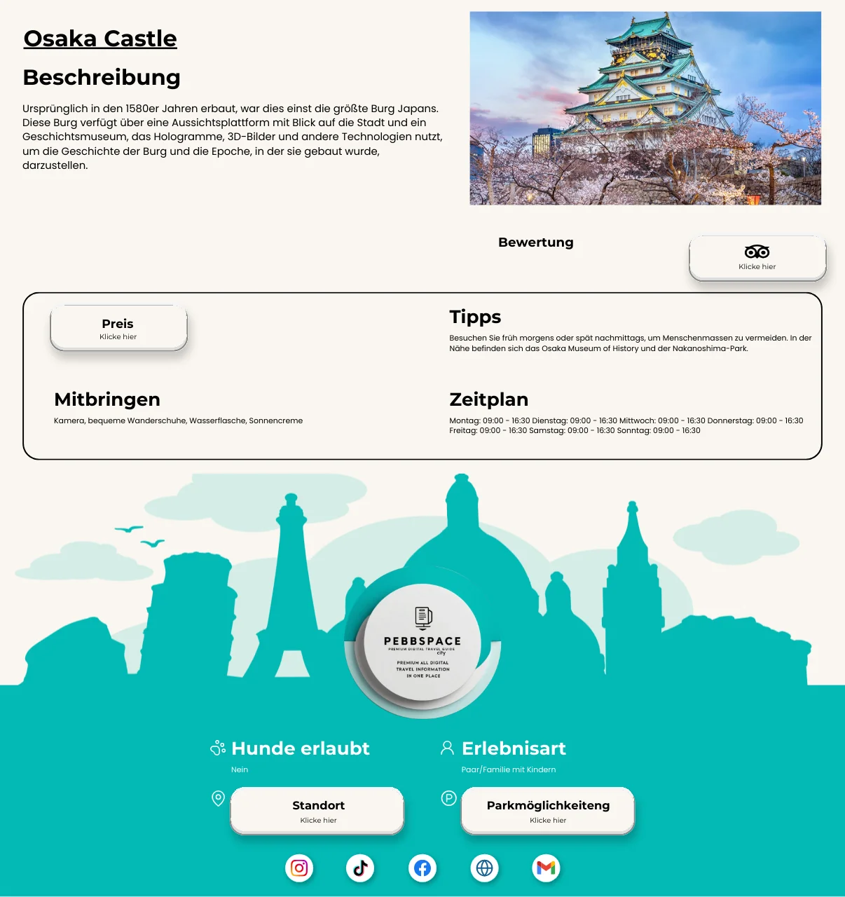 Erlebe das lebendige Ōsaka mit unserem Pebbspace City Guide! Von Street Food bis Nachtleben, von Märkten bis versteckten Perlen – dieser Guide bringt dich direkt in das geschmackvollste und bodenständigste Abenteuer Japans. Jetzt herunterladen und Ōsaka entdecken!