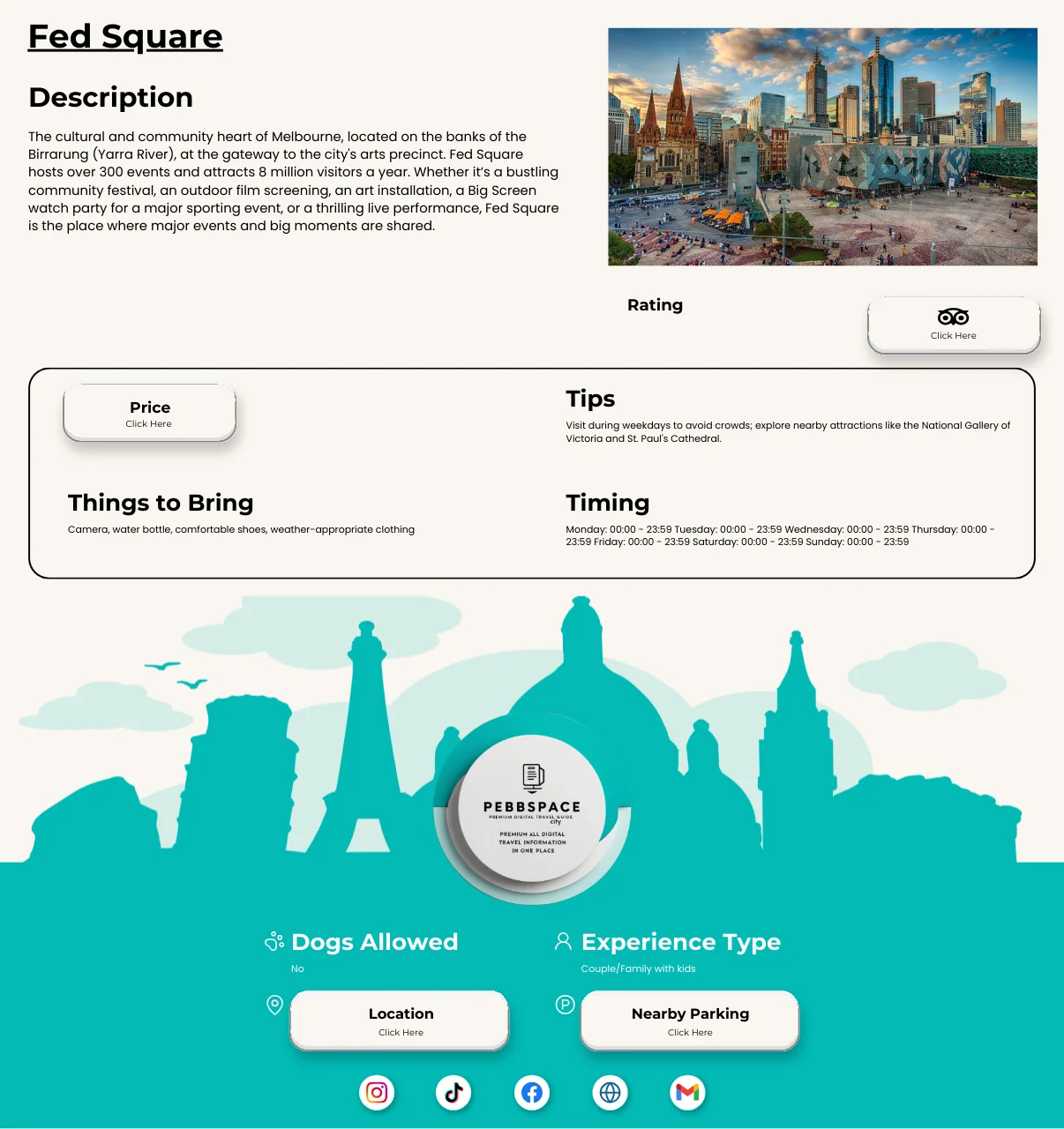 • Dies ist ein City Guide, der dir hilft, Melbourne mühelos zu erkunden und dich zurechtzufinden.