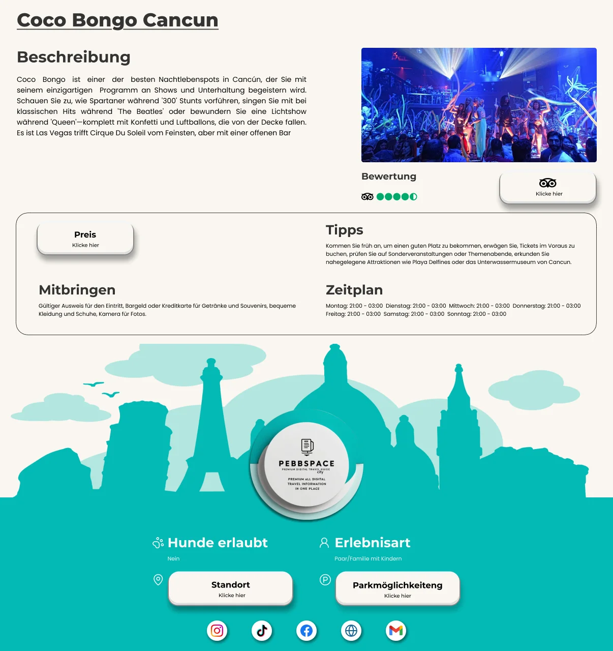 Erlebe das Beste von Cancún mit unserem Pebbspace City Guide! Mit handverlesenen Empfehlungen, atemberaubenden Attraktionen und Insider-Tipps ist dieser Guide dein Schlüssel zur Schönheit von Mexikos bekanntestem Strandparadies. Lade ihn jetzt herunter und plane dein Cancún-Abenteuer!