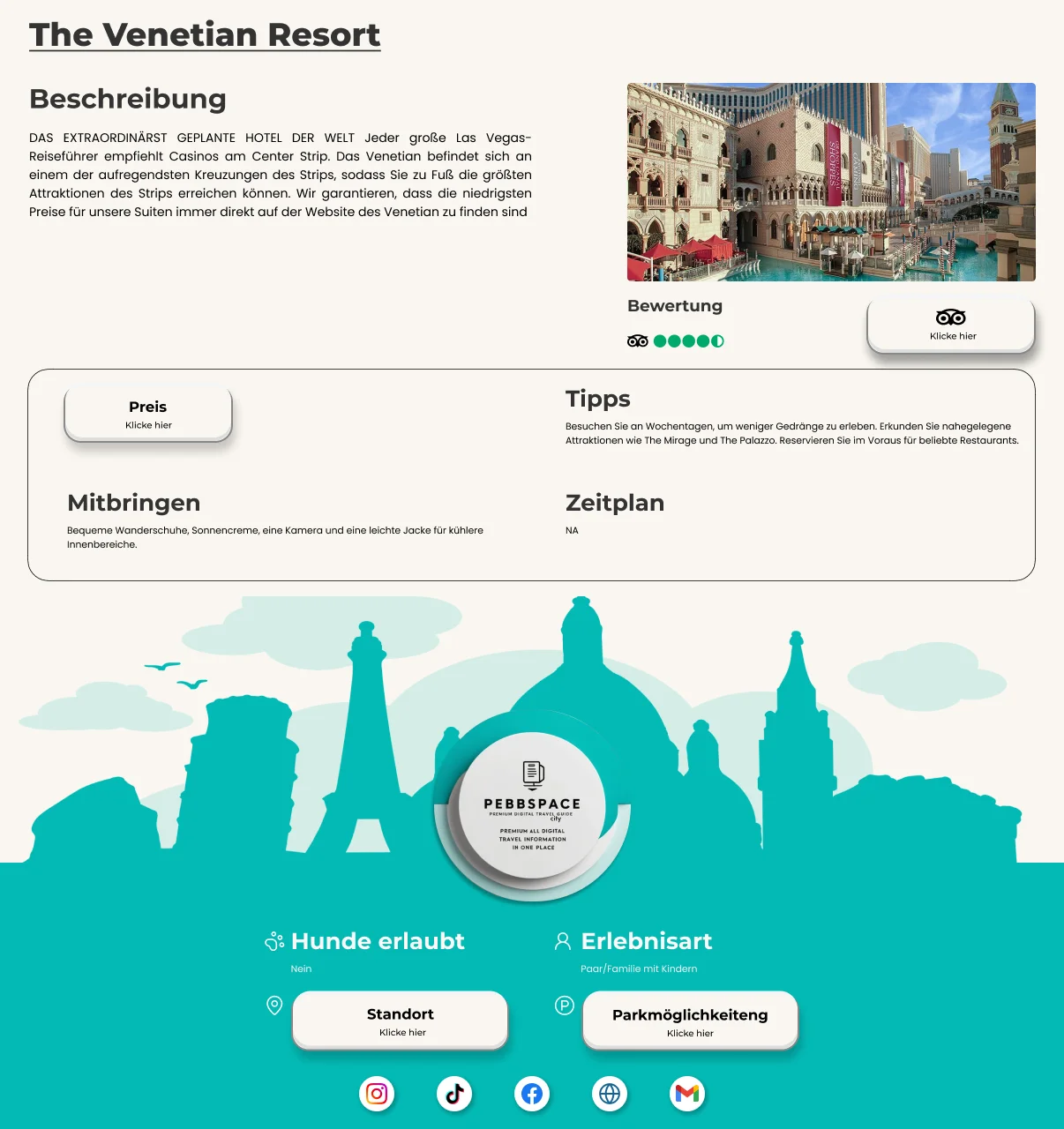 Entdecke das Beste von Las Vegas mit unserem umfassenden Pebbspace City Guide. Vollgepackt mit Insider-Tipps, aufregenden Attraktionen und handverlesenen Empfehlungen ist dieser Guide dein unverzichtbarer Begleiter, um die schillernde Wüstenmetropole zu erkunden. Egal, ob du Las Vegas zum ersten Mal besuchst oder die Stadt bereits kennst, unser City Guide hilft dir, versteckte Highlights zu entdecken und das Beste aus deiner Zeit in der „Entertainment Capital of the World“ zu machen. Lade ihn jetzt herunter und starte die Planung deines perfekten Las-Vegas-Abenteuers!