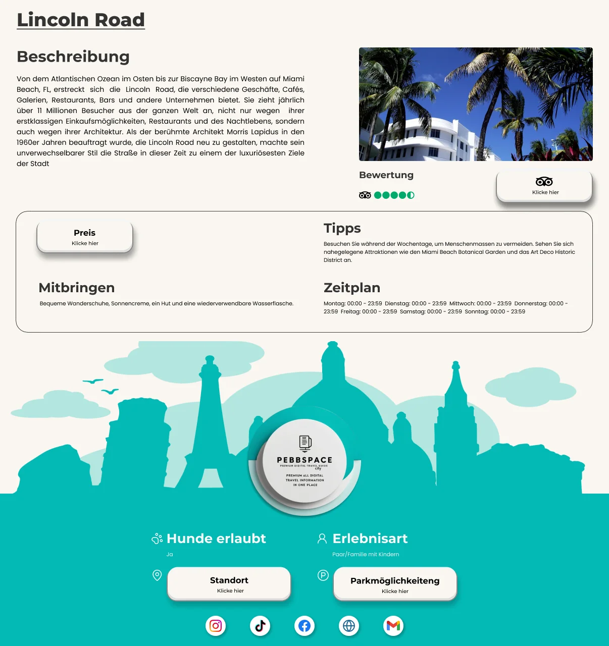 Entdecke das Beste von Miami mit unserem umfassenden Pebbspace City Guide. Vollgepackt mit Insider-Tipps, ikonischen Sehenswürdigkeiten und handverlesenen Empfehlungen ist dieser Guide dein unverzichtbarer Begleiter, um die pulsierende Küstenstadt Floridas zu erkunden. Egal, ob du Miami zum ersten Mal besuchst oder die Stadt bereits kennst, unser City Guide hilft dir, versteckte Highlights zu entdecken und das Beste aus deiner Zeit in dieser lebhaften Metropole zu machen. Lade ihn jetzt herunter und starte die Planung deines perfekten Miami-Abenteuers!